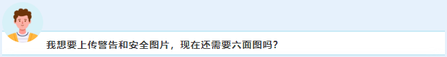 如果您能用较少的图片提供所需的安全警示信息,便无需使用全部6个图片展示位。如果您可以在一张图片里展示完整的安全警示信息,那么您只需要拍摄并上传一张图片即可合规。