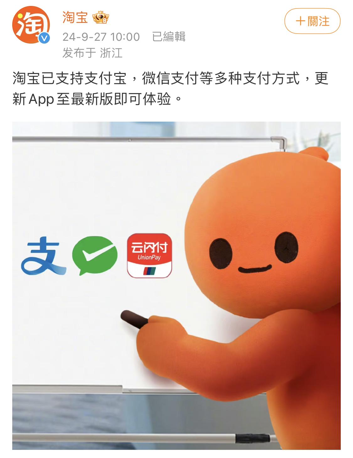 淘天方面对开放微信支付能力表示,淘天始终秉持开放的合作理念,积极探索与各平台之间的互通合作,不断提升消费者购物体验,让消费者的购物更便捷、愉悦和高效。