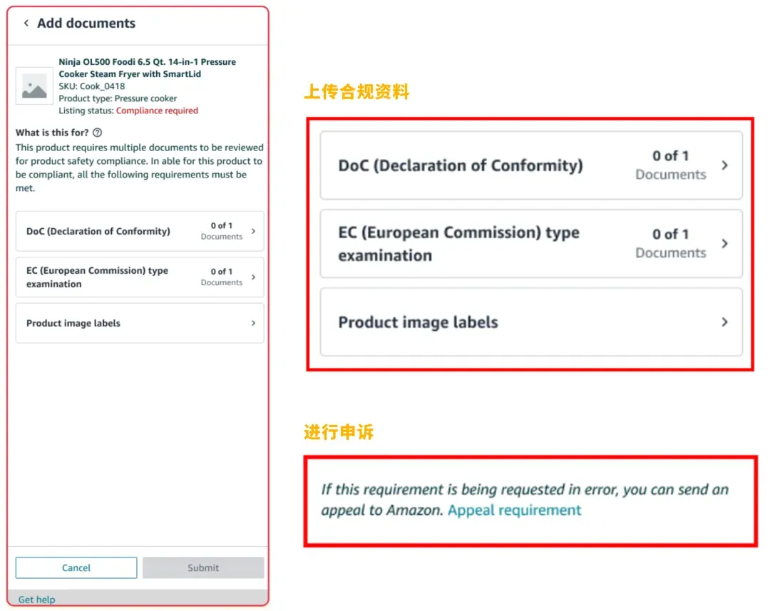 需要提交的合规材料的老listing也可以通过这个窗口上传合规材料。