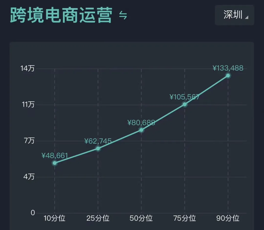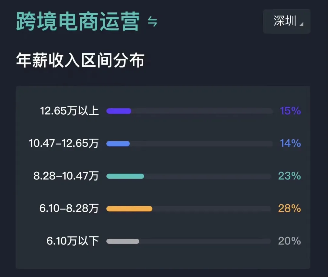 也就是说,只要你是跨境电商的运营,只要你月收入超过了1.05万,你在深圳就已经超过了85%的运营。