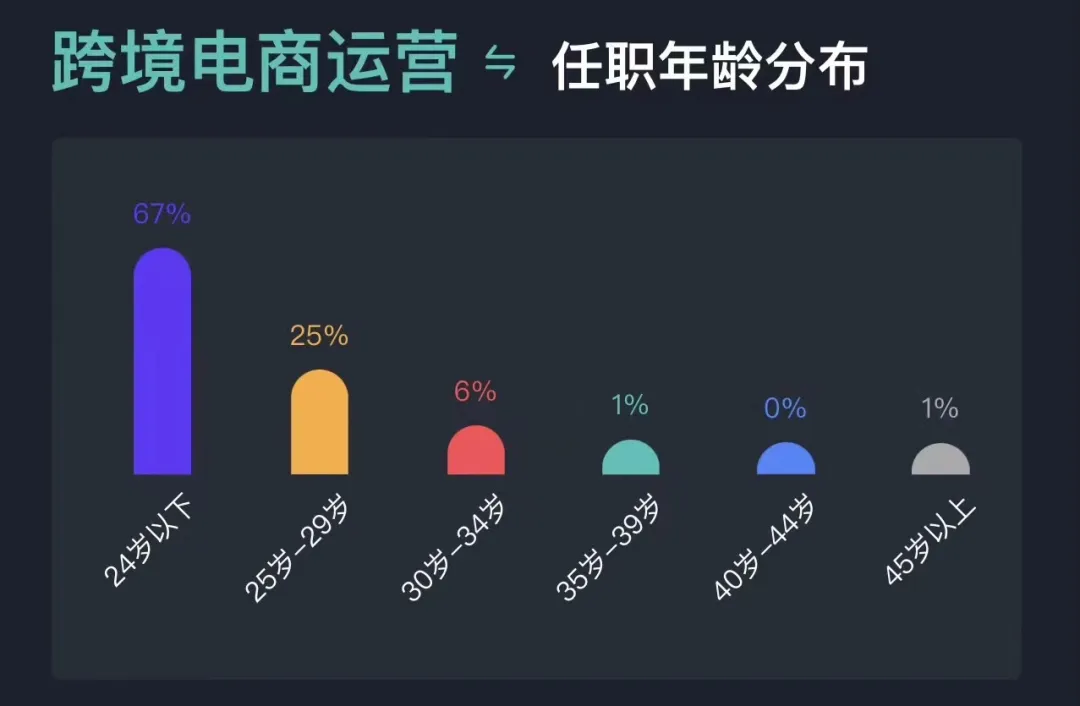 不信的话可以看看这份跨境运营的年龄分布图,35岁以上的,占比几乎都在1%以下了。