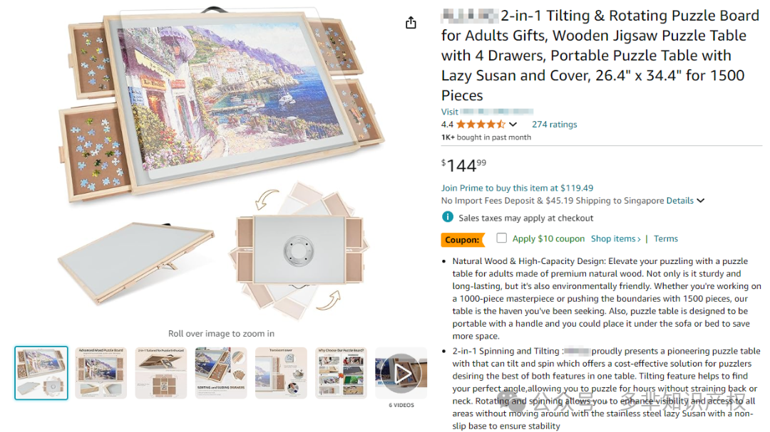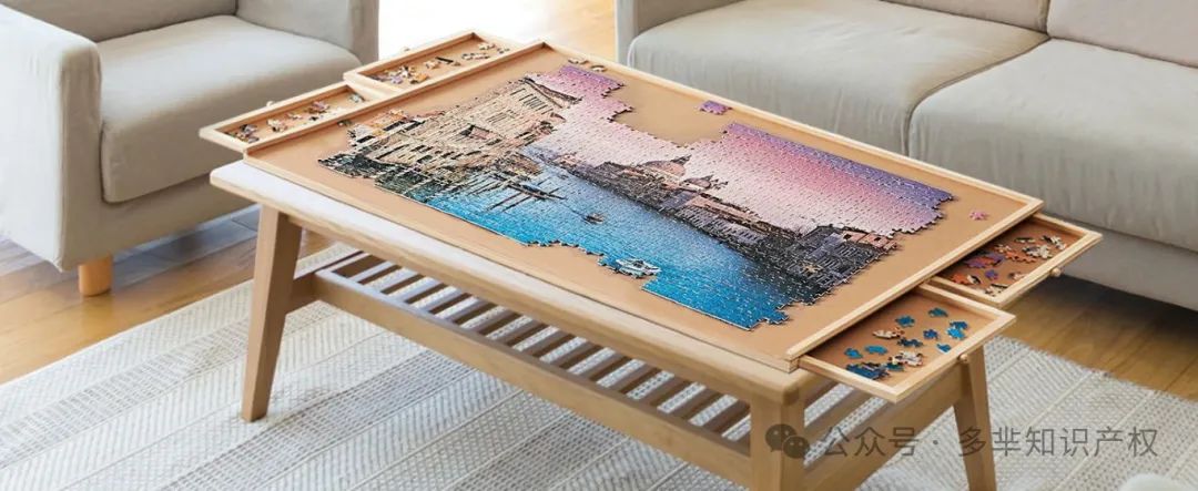 该专利涉及产品是一款可以倾斜和旋转的拼图板,提供一个平整、稳定的表面,让拼图碎片能够整齐地摆放和拼接,带有四个精心设计的分类抽屉可用作拼图托盘进行分类和保护。