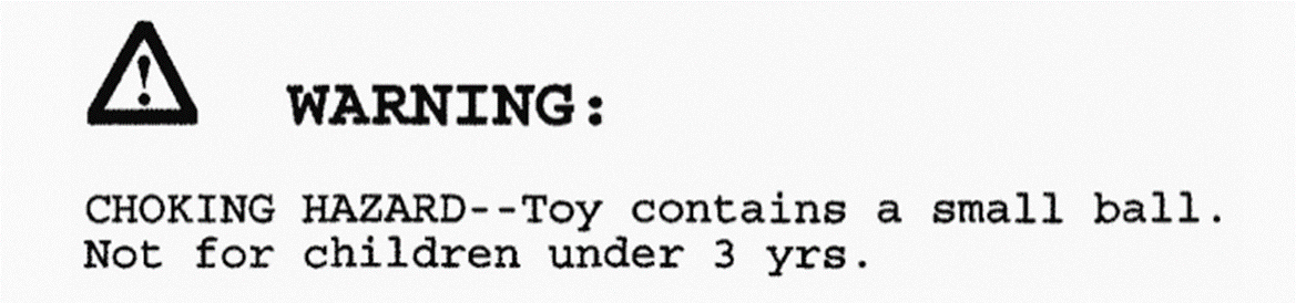 所有针对12岁及以下儿童使用的玩具必须经过第三方测试,根据检测报告出具CPC证书,证明其符合适用的儿童产品安全法规,包括16 C.F.R.第1250部分适用于儿童玩具的规定。 “玩具安全标准”指的是16 C.F.R.第1250部分所纳入的ASTM F963-23版本。注意,其标准版本会不定期更新。 主要为12岁及以下儿童设计或预定的玩具必须由CPSC(美国消费品安全委员会)认可的第三方测试实验室进行第三方测试,并且由制造商或进口商在儿童产品证书中进行认证。 尽管 ASTM F963 适用于供 14 岁以下儿童使用的玩具,但联邦法律要求对受儿童产品安全规则约束的物品进行第三方测试。法律将“儿童产品”定义为设计或主要供 12 岁或以下儿童使用的消费品。 儿童玩具除了需遵守 16 CFR 第 1250 部分的要求,还需要遵守以下要求: 4.1 小部件禁令和窒息危险标签:针对3岁以下儿童的产品不得含有小部件,并确保在测试后不会释放小部件。同时,某些含有小部件、气球、小球或弹珠的玩具必须附有警示标签。 4.2 油漆中的铅和类似表面涂层:针对12岁及以下儿童的产品,其油漆和/或类似表面涂层中铅的含量不得超过0.009%(90 ppm)。 4.3 总铅含量:针对12岁及以下儿童的产品,任何可接触的部件中总铅含量不得超过100 ppm(0.01%)。 4.4 邻苯二甲酸盐:针对12岁及以下儿童的玩具,其任何可接触部件中不得含有超过0.1%(1000 ppm)的任何受管制的邻苯二甲酸盐。 4.5 追踪标签:根据14(a)(5)(A) of the CPSA ,15 U.S.C. § 2063(a)(5)(A)法规追踪标签需包含以下识别信息: 制造商、进口商或自有品牌商的名称。 生产地点和生产日期。 制造过程的详细信息(如批号或运行号)或其他识别特征。 任何有助于确定产品具体来源的信息(如制造厂地址)。 注意:标签应清晰可见,永久性地固定在产品及其包装上。 根据《联邦有害物质法》(FHSA)的第2(p)条和第24条,某些物品未按要求贴标签,这些物品将被视为贴错标签的危险物质。 5.1 水上玩具( Aquatic Toys ):用于承受儿童体重并用作浅水中游戏工具的物品(无论是否充气)。这不包括洗澡玩具、沙滩球和美国海岸警卫队批准的救生设备。 5.2 婴儿床和游戏围栏玩具 (Crib and Playpen Toys ): 5.3 移动玩具 (Mobiles): 5.3.1专门为附在婴儿床或游戏围栏上设计的移动玩具,以及后来可能被移动到墙壁或天花板上的移动玩具,警告语: 5.3.2 专门设计用于附在墙壁或天花板上的移动玩具,警告语: 5.4 婴儿车和手推车玩具(Stroller and Carriage Toys): 5.5 成人组装的玩具(Toys Intended to be Assembled By an Adult): 5.6 模拟防护设备(Simulated Protective Devices): 5.7 带有功能性锐利边缘或尖头的玩具( Toys with Functional Sharp Edges or Points): ——供年龄在 48 至 96 个月之间的儿童使用的玩具,如果玩具带有易接触的潜在危险锐利边缘或尖头,而这些锐利边缘或尖头是玩具功能的必要组成部分,则应按照 5.3 的规定在包装上贴上安全标签,说明玩具带有锐利边缘或尖头,或者两者兼有。 5.8 小物件、小球、弹珠和气球(Small Objects, Small Balls, Marbles, and Balloons): 5.8.1 任何设计用于至少3岁但不满6岁儿童使用且包含小部件的玩具或游戏,如果包含小部件,必须附有或包含以下警告性声明, 这不包括书籍和其他纸制品、蜡笔、粉笔、铅笔和钢笔等书写材料、造型粘土和类似产品、手指画、水彩和其他颜料套装,以及16 CFR 1501.3中识别的任何其他物品(气球除外)。 5.8.2任何乳胶气球,或者包含乳胶气球的玩具或游戏,必须附有以下警告性声明: 5.8.3 任何设计给三岁以上儿童使用的小球必须附有以下警告性声明: 5.8.4 任何为至少3岁但不到8岁儿童设计的、包含小球的玩具或游戏都应附有以下警告性声明: 5.8.5任何为3岁或以上儿童使用的小弹珠都应附有以下警告性声明: 5.8.6 任何为至少3岁但小于8岁儿童设计的、包含弹珠的玩具或游戏必须附有以下警告性声明: 注意上述警告声明展示要求如下: 1、必须为英文书写, 2、需在一个正方形或者长方形区域内集中展示,可有边框,也可无边框,至少2行及以上展示; 3、背景必须为纯色背景;在标签设计中,需要确声明(比如安全警告或者年龄适宜性的声明)与其他图形材料(如图片、图标、其他文字等)之间保持一定的距离。这个距离的要求是,至少与其他警示材料中使用的最小字体大小的高度一样大。 5.9 艺术材料 Art Materials 根据16 CFR 1500.14(b)(8)中对艺术材料的定义,属于艺术材料的玩具及其组件应按照该条款和实践D4236的规定进行标签标识。 5.10 电动玩具:Electric Toys 电动玩具应标明:“CAUTION—ELECTRIC TOY.”。 玩具的销售包装或包装盒应在主展示面板的右上角区域标注:“CAUTION—ELECTRIC TOY: Not recommended for children under __ years of age” 如果产品包含加热元件,制造商不得标明该产品推荐给8岁以下儿童使用。对于其他可能不被视为“玩具”但打算供儿童使用的电动产品,可以将“电动玩具”一词替换为“电动产品”。 5.11 电池驱动玩具——使用硬币、螺丝刀或其他普通家用工具即可打开的不可更换电池的玩具应标明电池不可更换。如果制造商认为不宜给产品贴上标签,则应将此信息放在包装上或说明书中。 5.12 电池供电的骑乘玩具(Battery-powered Ride-on Toys): 电池供电的乘骑玩具应根据ASTM963-23中 5.3条 的规定贴有安全标签,由信号词“警告”组成,并至少包含清楚传达以下内容的文字: (a) 为降低受伤风险,需要成人监督。切勿在道路