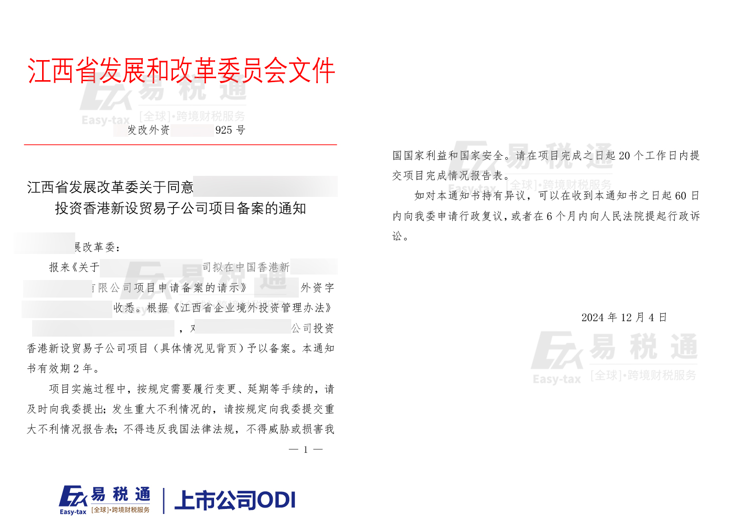 面对即将到来的外贸寒冬,跨境企业只有通过全球化的不断深入,才能找到更多生存与发展的空间,因此,越来越多的中国企业选择“走出去”,开展境外投资活动,包括生产、服务、贸易等领域。为了帮助企业更好地理解和应对ODI(境外直接投资)备案的要求,我们根据易税通专业团队多年的实践经验,整理了发改委办理境外投资项目备案核准的30个核心问题,给大家提供专业解答。