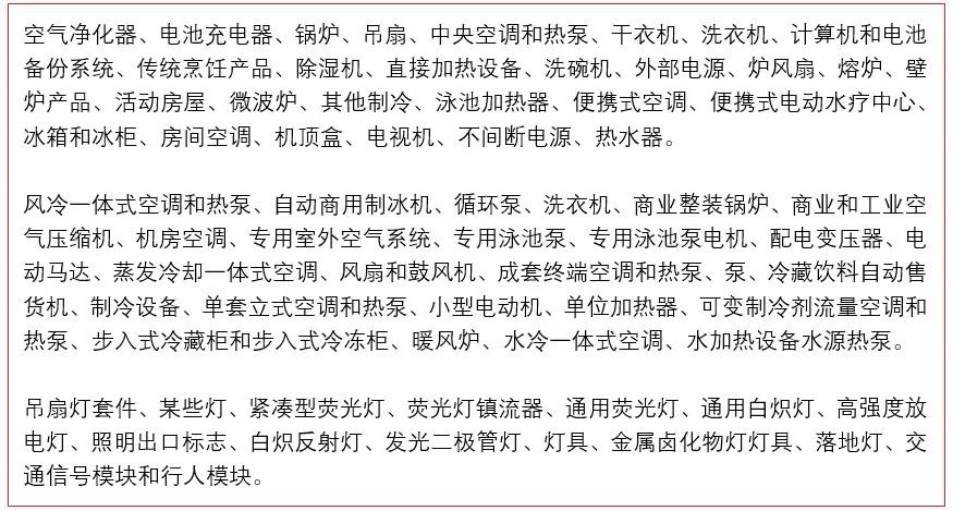 而且虽然这次亚马逊的新规仅仅针对管道类产品,但是这个DOE认证涉及的范围是很广的,在网上查了一下,很多很多产品都需要提交DOE认证才能售卖,比如下面这些产品:
