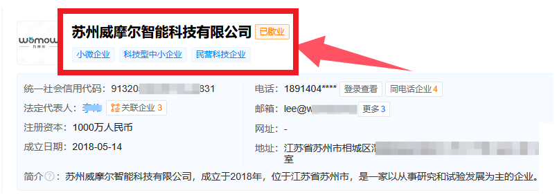 而在天眼查上查询该品牌所属的公司,页面显示该公司在工商登记系统的状态也是“已歇业”。