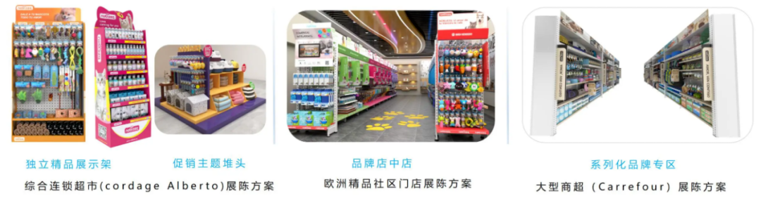在品牌建设策略上,AIGOSTAR 注重与海外渠道深度绑定。其特色打法之一是“终端门店升级计划”,为线下经销商免费设计装修品牌展示区、提供灯光、物料定制及产品陈列优化方案,用标准化视觉体系塑造统一品牌形象,这一做法不仅提升了门店销售转化,也显著强化了品牌在终端消费者心中的认知度。目前该服务模式已成功复制到墨西哥、智利、加纳、巴拉圭等经销商渠道,截至 2023 年底已落地欧洲 4000 多家门店,仅 2023 年就为集团贡献了高达 7500 万欧元销售额。