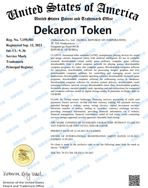 在本案中,维权的商标范围广泛,包含了“Dekaron”“Dekaron Coin”以及“Dekaron Token”等极具标志性的品牌标识。除此之外,还有两项与游戏版权相关的内容,其注册号分别为TX 0009-436-663和S-2005-001386。海象跨境提醒跨境卖家未经允许的情况下请勿随意使用,否则会有侵权风险。