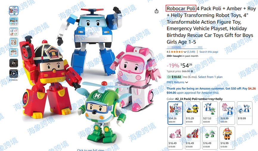 原告品牌:ROBOCAR POLI 变形警车珀利