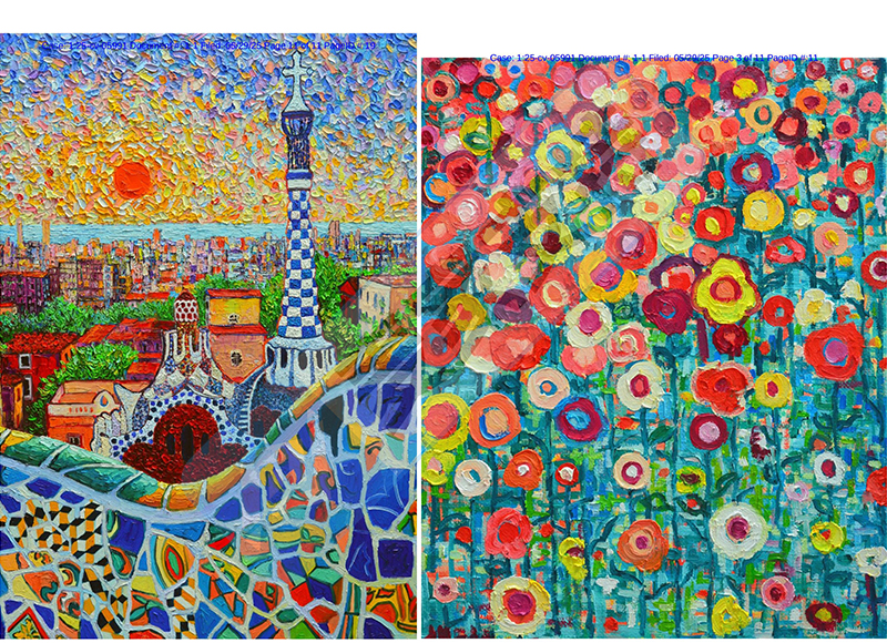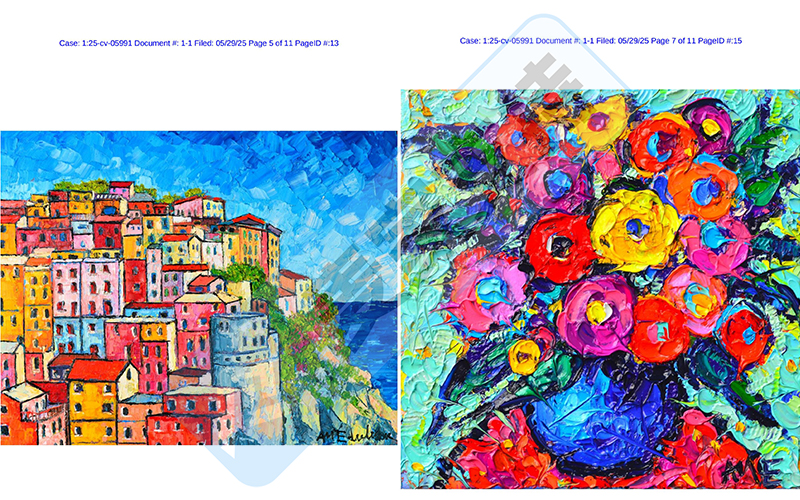5月29日,keith律所在美国共发起5起TRO维权案件,其中4起为全新版权方维权,可谓是权利冲刺月末KPI业绩!本案是keith律所代理Ana Maria Claudia Edulescu 的版权发起的跨境维权,共涉及VA 2-420-401、 VA 2-420-388、 VA 2-420-398、 VA 2-420-409和VA 2-420-396等5个油画版权作品,目前该案件处于前期立案阶段,暂未获批TRO临时禁令,跨境卖家速速排查!