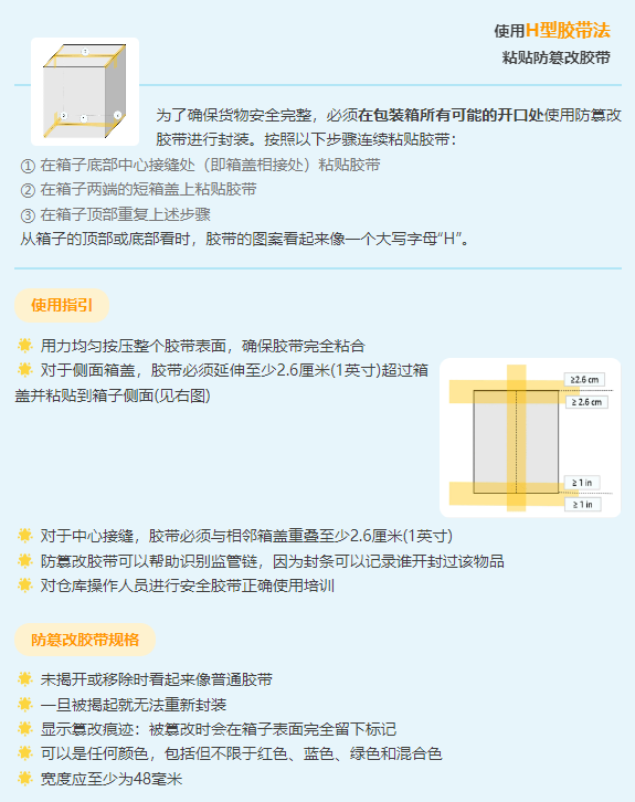 卖家只需要对应单个箱子都有做好防篡改胶带的封装即可。