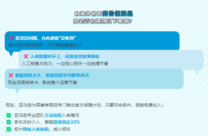 除了可以加入高客单价商品入库计划外,FBA为卖家高客单价商品提供三重关键保障: