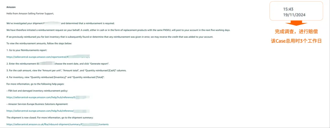 如果有任何商品丢失,卖家会收到一封邮件,包含卖家平台case链接。