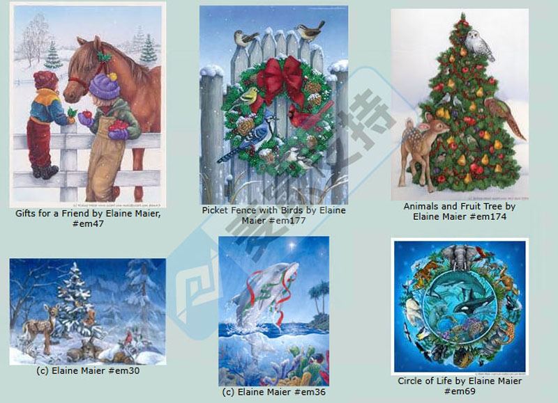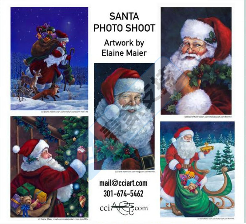 Elaine Kay Maier作为一名资深自由职业者,曾与Leanin’ Tree、Ravensburger、Custom Decor等品牌合作过,也涉足过零售广告与T恤设计领域。她笔下的圣诞老人肖像,以慈祥与生动的形象出现,成为传递节日喜悦的文化符号,被广泛用于节日用品中。