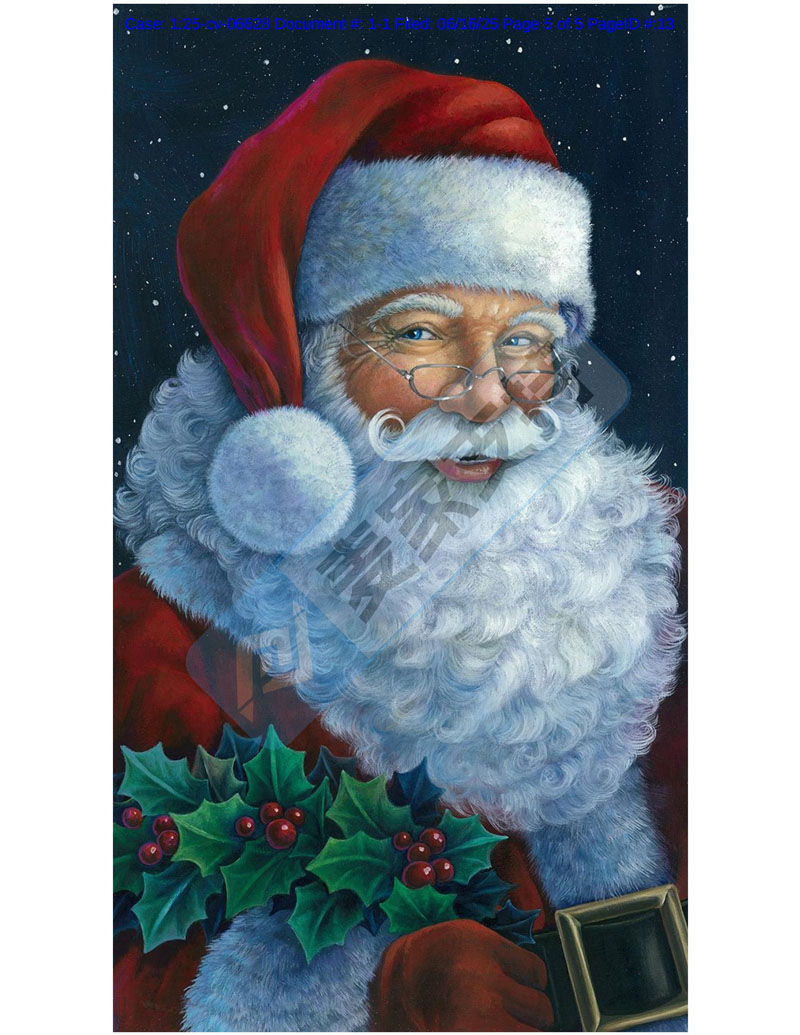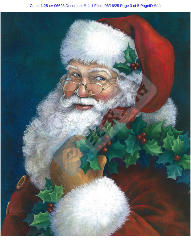 keith律所再代理一起全新TRO维权案件,涉案版权号为:VA 2-423-350 和VA 2-423-136,两张来自艺术家 Elaine Kay Maier创作的圣诞老人肖像版权作品。圣诞老人作为版权维权案件中的常客, 一年四季均以不同的形态出现,及其高危,麦家支持建议跨境卖家在选品时尤其需要注意规避,尽量避开热门图片,避免踩坑TRO雷区!
