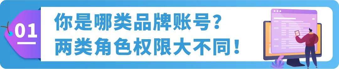 品牌账户角色分为两类,分别管理不同的工具权限。