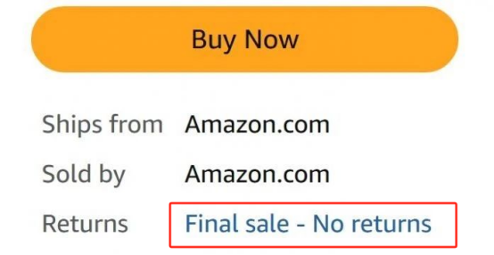然而最近,有卖家反馈,亚马逊上的部分产品出现了“Final sale - No returns”(最终销售 - 不可退款退货)的标签,位于产品店铺信息下方。但是目前基本上都只有亚马逊自营品牌/VC账号的商品才会有这个标签。