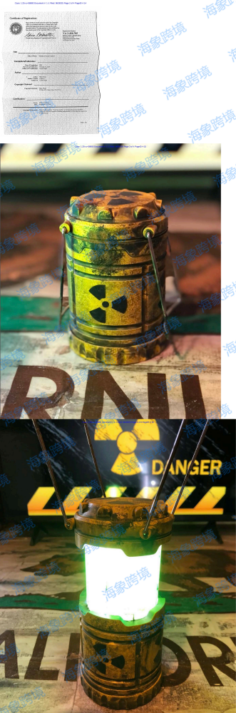 原告 Mike Flynn 是一位来自美国俄勒冈州的专业艺术家。其作品将实用物品与反乌托邦美学相结合,案件涉及产品是一款核反应露营灯,以下产品图均不可使用!