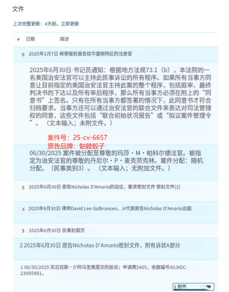 案件号:David 律所代理艺术家Nicholas D'Amario,于2025 年 6 月 17 日在伊利诺伊州发起诉讼(案件号:25-cv-06657 ),目前处于立案阶段,暂未申请 TRO,但风险已至!亚马逊、沃尔玛、阿里国际、eBay、Temu 等平台卖家,务必立刻自查店铺链接!