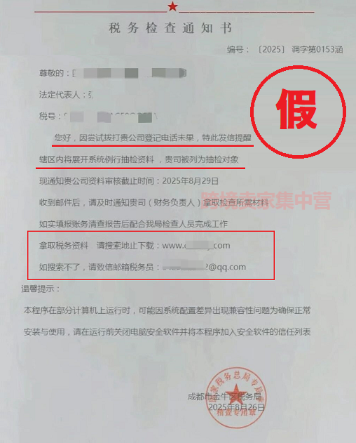 如果是这样,那你就真的上当了,这是一封彻头彻尾的假冒税务检查通知书。