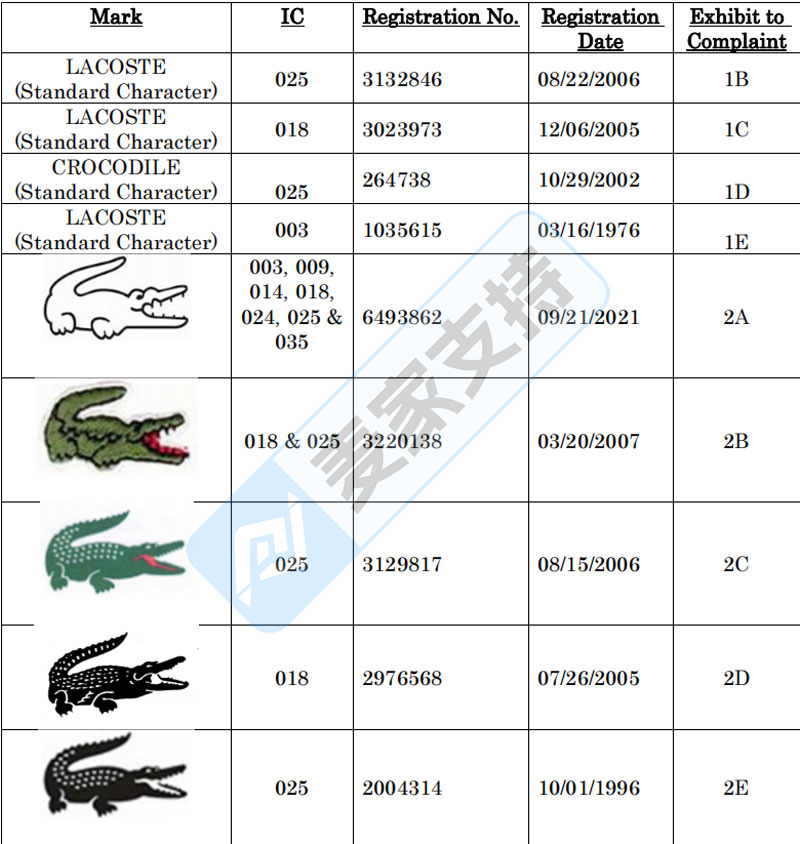 品牌方:Lacoste Alligator S.A.,