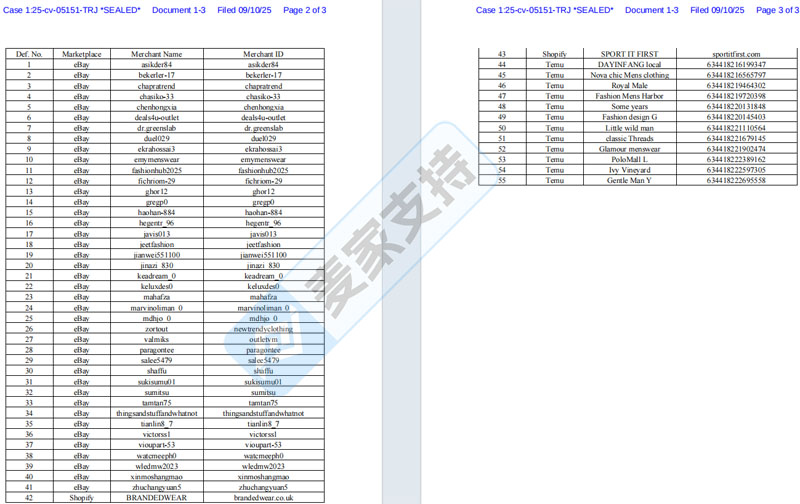 本案是Sriplaw律所代理知名品牌Lacoste在佐治亚州北区联邦地区法院发起的商标维权案件,本案共55店涉案,其中41个店铺来自ebay平台,12个店来自Temu平台,均为未经授权使用其商标的侵权行为,目前该案件已经向法院递交了TRO申请,预计将于近期获批!需要名单的卖家可在评论区留言“名单”联系我们获取。
