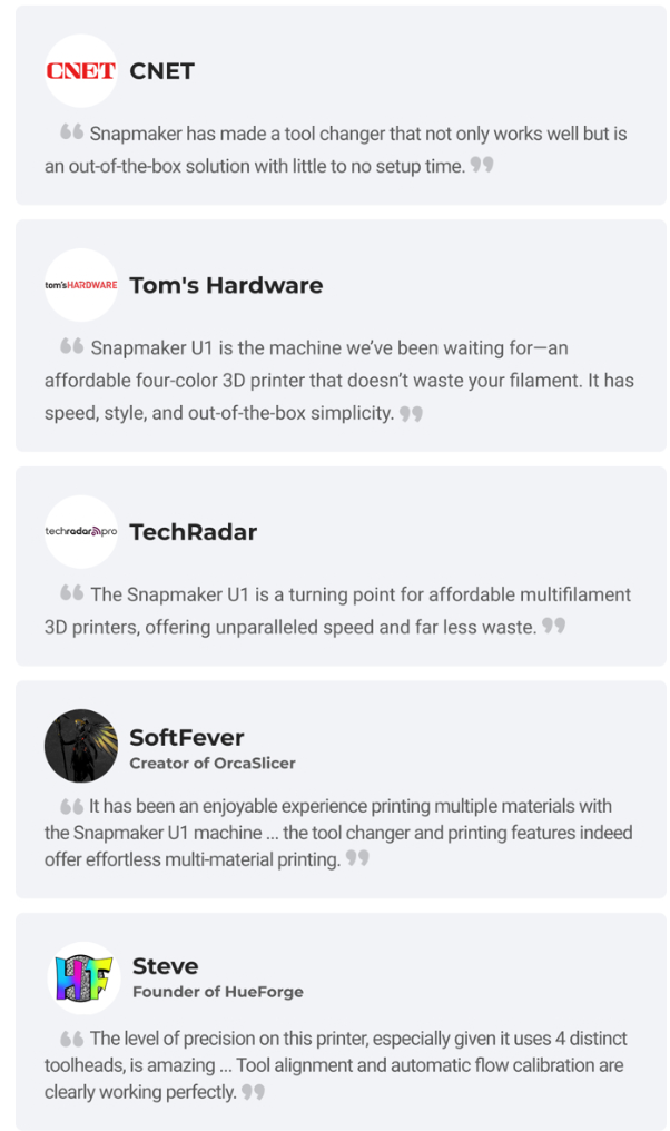 多位行业内KOL发布油管视频,为Snapmaker U1做了深度测评。