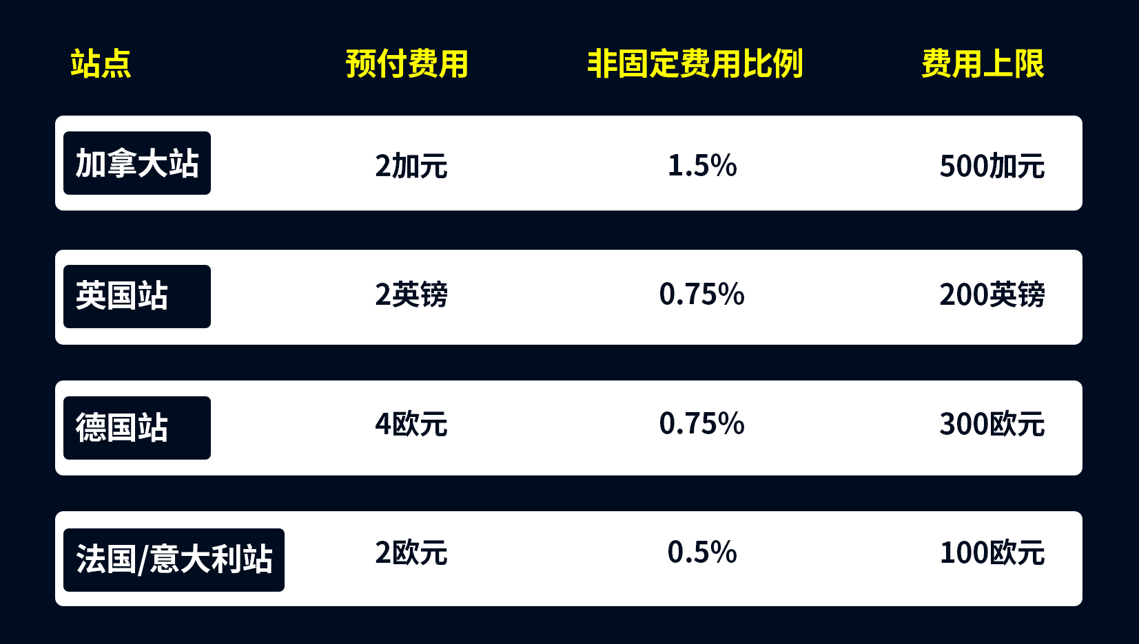 除了美国站,其他站点也同步调整了优惠券收费结构,普遍趋势是降低费率、设置上限.