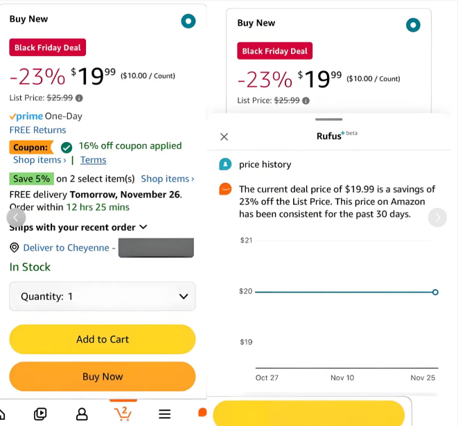 事实上,价格透明化趋势在亚马逊平台上已初现端倪。此前,亚马逊的Rufus AI购物助手已经推出了价格历史查询功能,允许部分消费者查看产品的历史最低价格。不同的是,此次测试的“Price History”按钮将这一功能直接前置到产品详情页,大大降低了消费者使用的门槛。