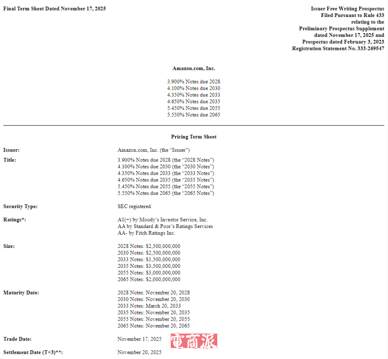亚马逊上一次发行美元债券还是在2022年11月,当时筹集了82.5亿美元。