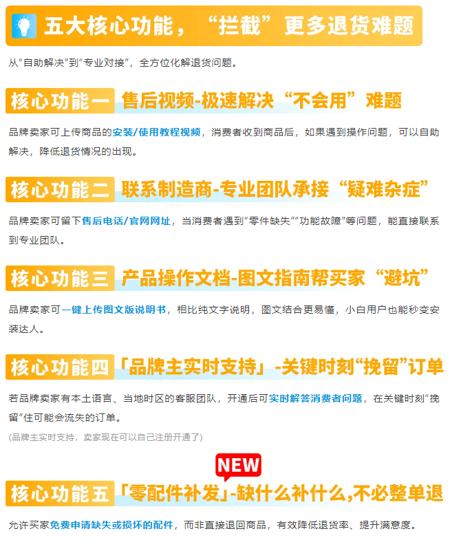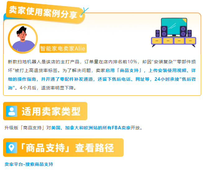 「商品支持」(Product Support),是亚马逊推出的售后支持工具,被众多卖家称为退货率“拯救者”!通过五大核心功能,在消费者想退货时“主动提供解决方案”,进而降低退货率。