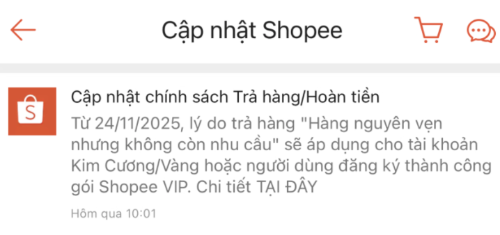 据悉,自 2025 年 11 月 24 日起,Shopee 越南站正式将“商品完好但不再需要”作为退货/退款理由的适用范围限制在两类特定买家:一类是 Shopee 会员计划中达到钻石或黄金级别的用户,另一类是已注册 Shopee VIP 套餐的用户。如果您不属于以上两类用户,则今后将无法使用“不再需要”作为退货理由。 如果买家属于“不再需要”而有权退货的群体,则退回的商品必须满足非常明确的要求:保持收到时的完好状态——包括标签、包装盒、配件、发票(如有),且未使用或未受到任何可能使其失去“全新”状态的影响。 如果买家以此为由退货,但商品已不再处于相同状态,则卖家可以拒绝接受退货,或根据商品开封的证据提出投诉。 虽然“不再需要”退货政策被认为是一种让买家在网上购物时更有安全感的机制,但实际上,多年来,一些用户滥用这一机制随意退货,给卖家造成了巨大损失。 许多卖家反映,收到的商品即使买家选择了“不再需要”作为退货理由,也已被试穿、标签被撕毁或已损坏,他们“打开包裹后只能哭诉”。 Shopee 提高退货标准可能会给部分用户带来不便,但总体而言,这是为了减少滥用行为、打造更透明的交易环境而做出的合理调整。