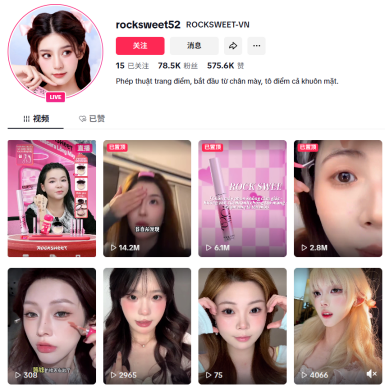 这一品类不仅竞争者少,更重要的是与越南女性偏好的轻薄底妆高度契合,精准解决了“眉粉易晕、眉笔生硬”的痛点。借助短视频在新品类破冰,正是摇滚甜心熟悉的打法。