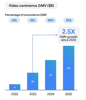 近期,淡马锡联合贝恩、谷歌发布的《2025东南亚数字经济报告》预测,今年东南亚六国电商GMV将达到1810亿美元,同比增长16%。其中,内容电商GMV占比从2022年不足5%,一路上扬至2025年的25%。报告指出,布局内容电商的卖家和店铺已突破300万,与去年同期相比激增80%。