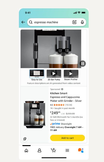 最近,亚马逊给SP广告悄悄加了一个新功能——SP视频广告。过去只有 SBV 才能用的视频广告形式,现在SP广告也能玩了,而且还能一次展示多段商品功能视频。