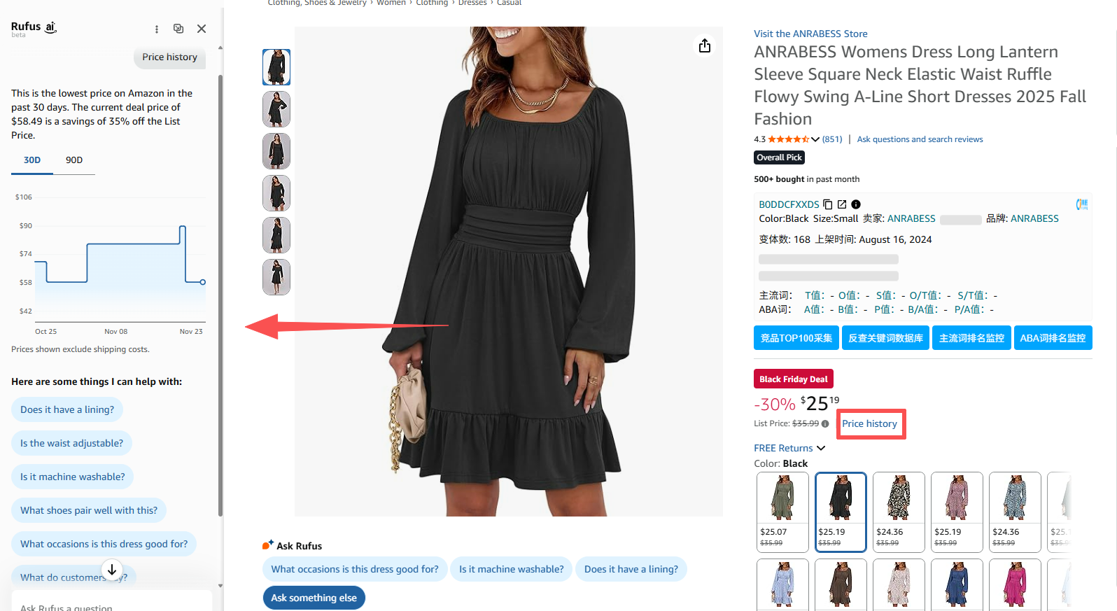 因此,把“Price history”放到详情页是必然,也是趋势。卖家点击后可以清晰看到该商品过去30天、甚至90天的价格波动曲线。