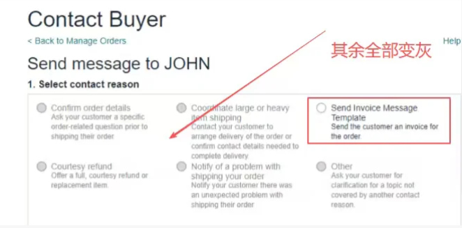 这项悄然实施的变革在卖家圈引发轩然大波。原本可以点击的【联系买家】功能,现在全部突然变灰,无法正常使用了,只剩下一个“发送发票信息模板”可以选择。