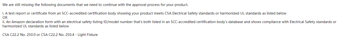 卖家们也纷纷给出建议,有卖家支招,需要加拿大标准委员会认可的认证机构出具的报告才可以,得出指定标准CSA C22.2 No.250.0 或者 CSA C22.2 No.250.4的报告。可有卖家表示,这是BUG。一卖家开case有的客服说是系统BUG,“绩效窗口报错,但商品可售,后台工具查询ASIN没报错,所以提交文件会被拒绝,建议等待绩效自动消除”。