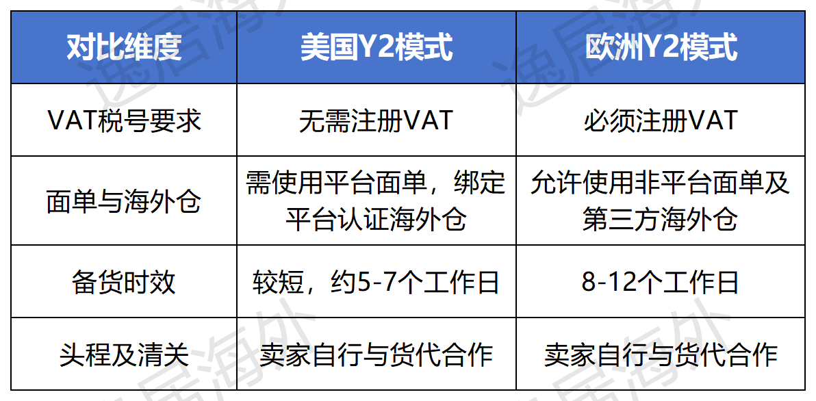 今年4月,Temu已经在美国站推出Y2模式。和美国站相比,欧区Y2有两点不同:美区要求平台面单并绑定认证海外仓,欧区允许使用第三方海外仓和非平台面单,规则更灵活。美区Y2无需注册VAT,而欧区必须持有对应国家的VAT税号。