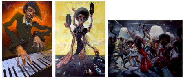 艺术家Justin Bua以融合街头文化与现代艺术的独特风格闻名,其标志性作品《The DJ》以夸张肢体语言和动态构图,刻画了一位专注刮擦唱片的DJ,成为全球畅销版画。