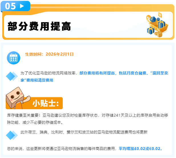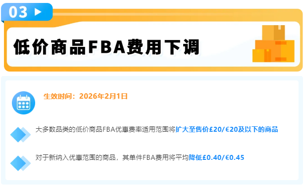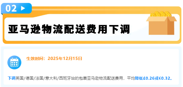 2026年,亚马逊将在欧洲站推出有史以来最大规模的费用下调之一,每件商品的费用将平均降低£0.15或€0.17。其中利好包括:
