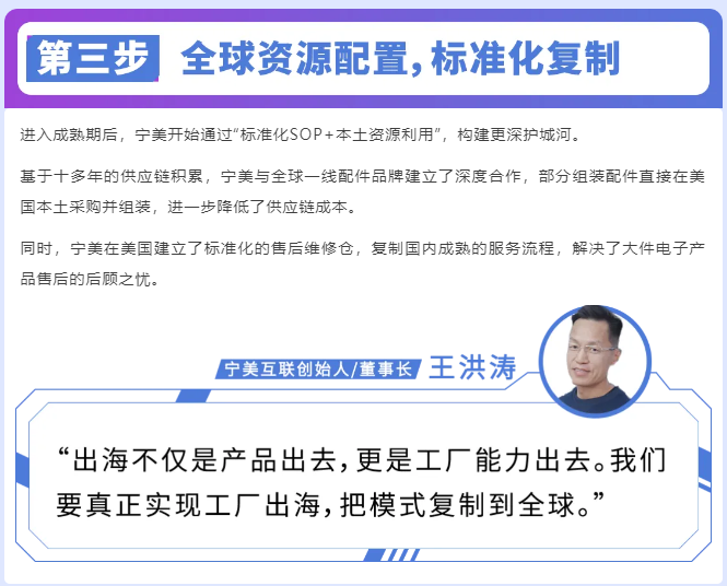 作为从制造端成长起来的品牌,宁美国度的跨境成功,核心是工厂制造硬实力、多重精准策略的结合。对于同样希望出海的传统制造工厂,宁美国度的经验表明:扎实的制造功底是出海的基础,但同时需要针对海外消费特点,搭建完善的运营和服务体系。