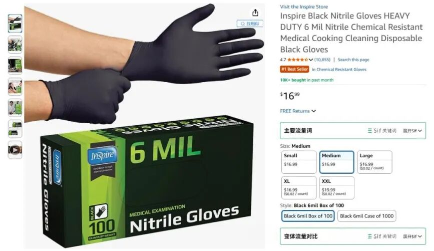 比如说,一款一次性手套产品,图片有展示厨房清洁场景,在 "cleaning gloves" 关键词下排名显著提升,就算标题中 "cleaning" 出现不多。