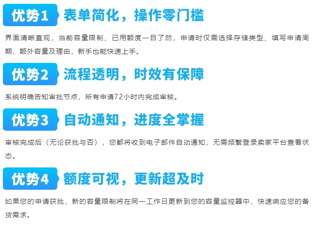 亚马逊物流仓储容量管理器以4大核心优势,助力卖家库容管理更高效: