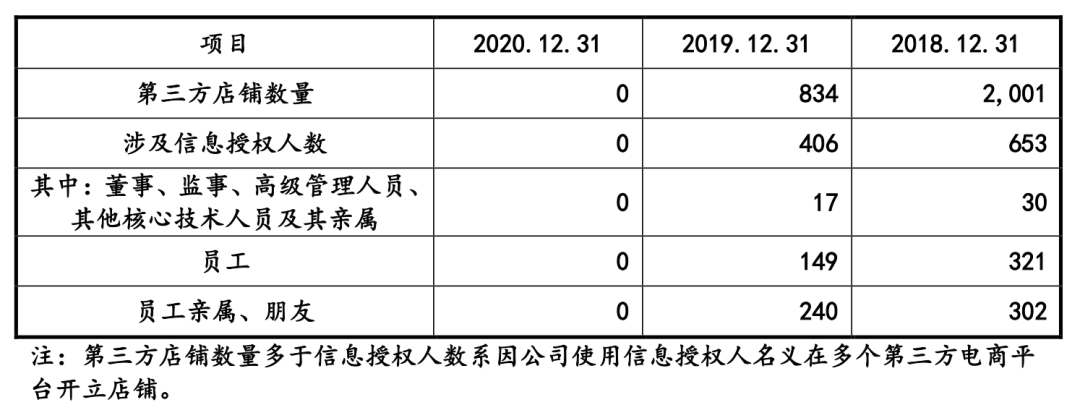 2020年上半年以前,其第三方店铺的信息主体,一般是公司高管、员工、员工亲属及朋友。公司与信息授权人均签署了《信息使用承诺书》,保证公司能够实际拥有该等账号及店铺的控制权、所有权和其他相关权益。为对第三方店铺进行规范, 赛维时代自2020年下半年起不再与第三方签署《信息使用承诺书》新设第三方店铺。