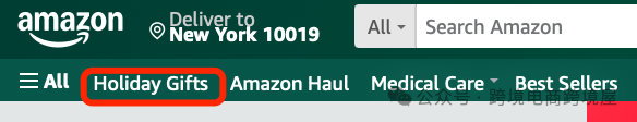 主页左下角,第一名的栏目标签位置,现在属于Holiday Gifts,而不再是Amazon Haul。