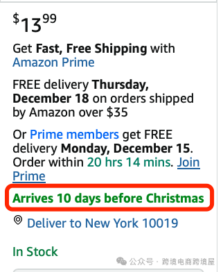 在商品详情页,价格下方往年都是简单的“Arrives before Christmas”,今年进一步加上到达距离圣诞节的天数,让消费者对收货日期更加心里有数。