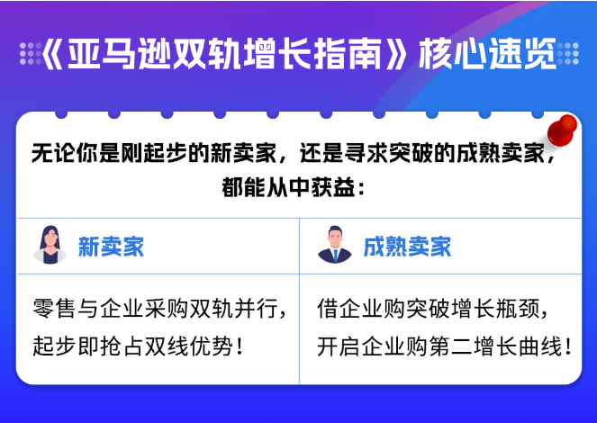 官方最新发布的《亚马逊双轨增长指南》为您深度拆解企业买家需求和行为,并结合面向个人消费者(C端)和企业买家(B端)的各种智能工具打法介绍,助你精准把握双边商机!