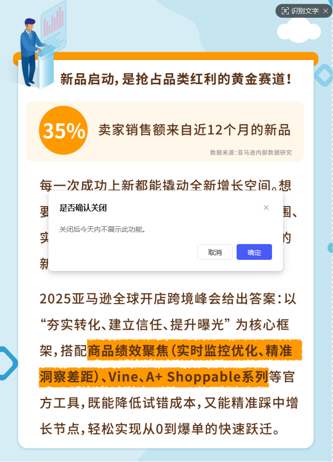 卖家峰会上,亚马逊全球开店高级经理Ami Pandya强调,组合运用优质内容、信任背书、流量工具的卖家,早期销售概率最高可提升85%。