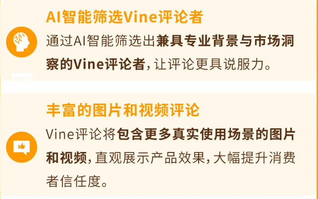 亚马逊全新升级的Vine评论工具,让新品自上线起就具备更强说服力。